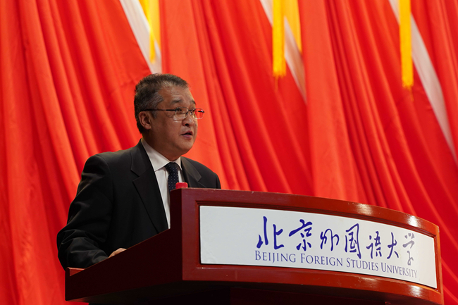 胡志钢代表学校党委对北外共青团和广大青年提出三点希望:一是加强思想引领,抓实二十大精神学习贯彻。要根据学校党委部署要求,扎实做好思想政治引领工作,教育引导广大团员青年立志做有理想、敢担当、能吃苦、肯奋斗的新时代好青年;二是夯实组织建设,做好党的助手和后备军。要坚持党建带团建,不断夯实基层组织建设,巩固提升凝聚力、向心力,教育引导团员青年坚定不移听党话、跟党走,切实将青年学生紧紧凝聚在党的周围;三是坚持守正创新,全面服务学校育人大局。要不断探索新思路、新方法,持续打造团学精品,在培养学生家国情怀上建体系,在开拓学生全球视野上搭平台,在提升学生专业本领上添助力。