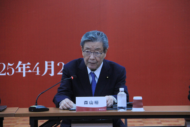 森山裕感谢北外的热情接待,表示在信息化迅速发展的今天,中日两国人民更应该通过交流加强理解,尤其是面对一些影响中日两国人民感情的不实信息,应该实际去到对方国家,通过自己的眼睛和耳朵亲自确认。他鼓励年轻人要勇担中日友好交流的重担,并表示愿努力推动两国青年交流。