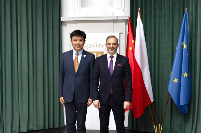 5月9日上午,代表团访问波兰雅盖隆大学,出席克拉科夫孔子学院理事会议。雅盖隆大学副校长雅罗斯瓦夫・古尼亚克教授(Jarosław Górniak)等外方理事出席会议。理事会成员听取中波方院长2024年工作报告和2025年工作计划,审议2024年财务报告。赵刚充分肯定克拉科夫孔子学院过去一年在教学、学术、文化活动等各方面均取得的成绩,希望孔院作为平台持续深化北外与雅盖隆大学的合作,进一步推动中波学术交流、课程建设和人才培养,共同为中波人文交流发展注入新活力。