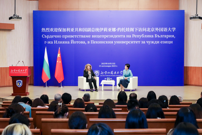 10月15日,保加利亚副总统伊莉亚娜·约托娃访问北京外国语大学。北外校长、党委副书记贾文键会见约托娃一行。