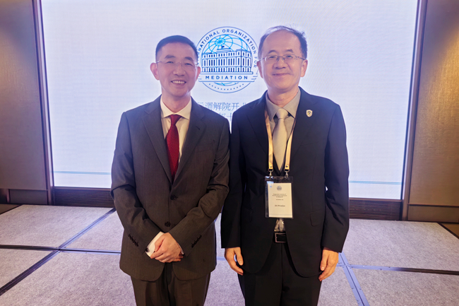 贾文键向调解院正式成立表示祝贺。出席期间,他与国际调解及仲裁领域人士广泛交流,并表示,北外将依托全球语言服务平台,秉持“共建、共生、共享”原则,打造专业、精准、智能的语言服务生态,发挥多语种服务和跨文化交流优势,为国际调解过程中的语言翻译与文化沟通提供专业支持,助力消除语言与文化障碍,促进不同文明间相互理解,为国际调解院顺利运作提供坚实保障。