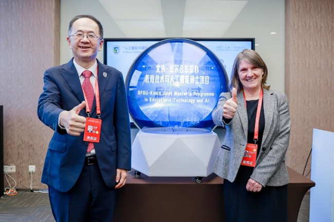 开幕式上,北外与英国基尔大学合作举办的“教育技术与人工智能”硕士项目正式启动。该项目标志着两校在国际教育领域合作迈入新阶段,项目将为培养具有国际视野的教育科技人才提供优质平台。