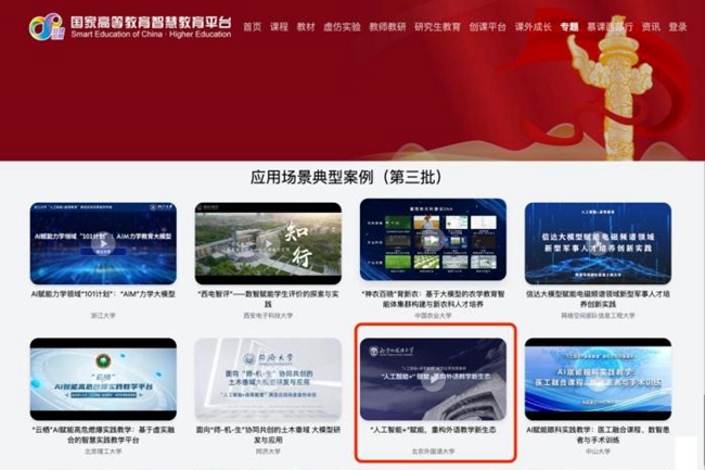 “人工智能+高等教育”典型应用场景案例征集工作由教育部高等教育司组织开展,旨在推广技术赋能显著、具备可复制性的优秀教学实践成果,本批共有30个案例入选。北外申报案例此次入选,标志着学校智慧教育建设成效获得国家级权威认可,是学校信息化建设理念落地为卓有成效教学实践的生动证明,充分体现了学校在人工智能赋能外语教学领域的前瞻性探索。