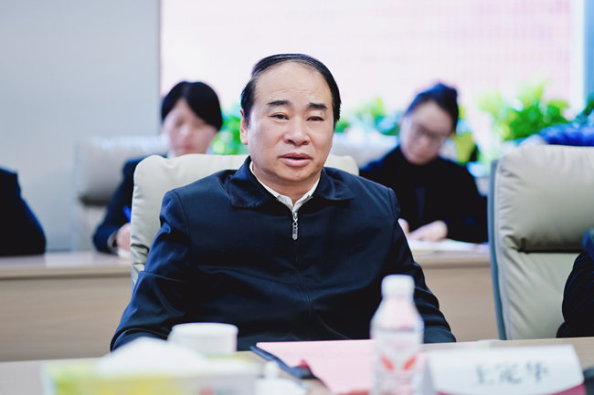 实地考察后,王定华召开座谈会,听取北外附校工作汇报。北外附校校长张文超以“转型提质绘新篇 特色发展启新程”为题,从构建特色化的价值文化体系、一体化的课程教学体系、专业化的教师发展体系、规范化的现代治理体系等四大方面作工作汇报。北外附校党总支书记张继军代表附校全体教职工对大学党委长期以来的关心与支持表示衷心感谢。她表示,北外附校党政融合紧密,领导班子团结协作,教职工队伍精神饱满、干劲十足。全校上下对学校发展前景充满信心,正朝着建设高品质复语型复合型外国语学校的目标稳步迈进。