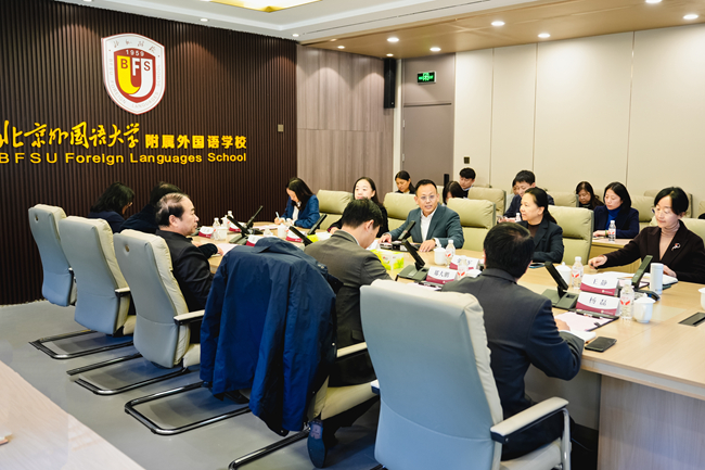 2025年10月21日上午,北京外国语大学党委书记王定华一行赴北京外国语大学附属外国语学校调研,实地考察学校教育教学各环节,听取工作汇报,全面了解附校在落实立德树人、推进课程改革、提升育人质量等方面的实践探索与阶段成效。
