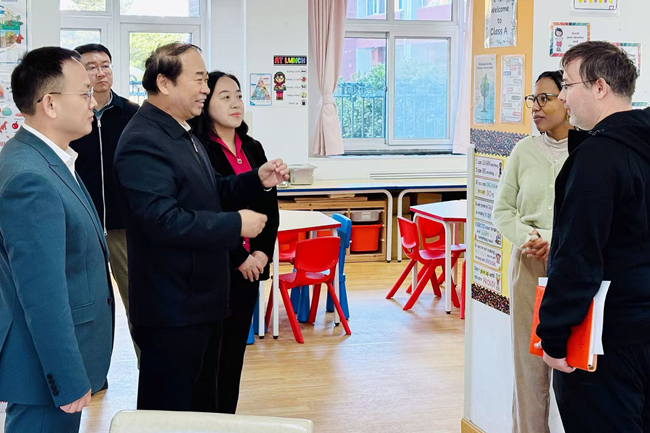 北外附校党政班子成员,各中心、学部负责人参加座谈。调研期间,王定华还走进北外外籍人员子女学校课堂,与外籍教师亲切交流,了解课程设置与学生发展情况。执行校长马晓燕汇报了学校在多语教学、跨文化课程等方面的实践。王定华鼓励学校进一步拓展生源规模,增强国际影响力,服务多样化教育需求。