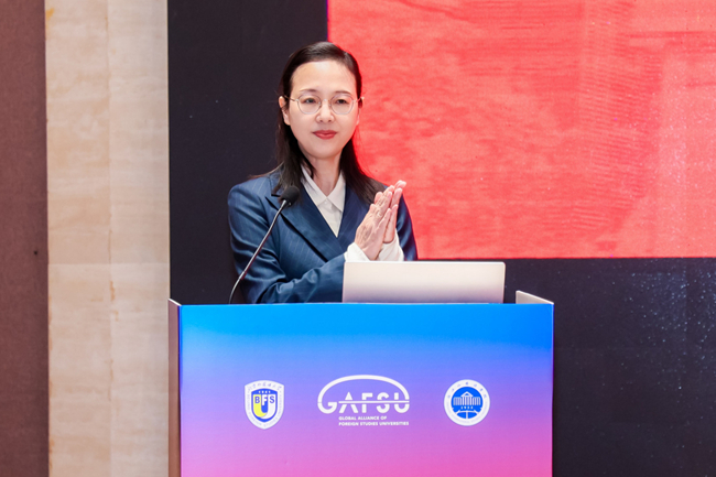 张环宙在致辞中指出,论坛为全球外国语大学联盟成员搭建了一个跨文化教育共同体的交流矩阵。希望与会嘉宾以会为桥,增进理解、厚植友谊;以会促研,推动教育创新科研协同的国际化路径等关键领域分享智慧、探索路径;以会赋能,服务世界所需,共同培养具备全球视野与国际胜任力的优秀人才,为完善全球治理、促进人类福祉贡献外语教育力量。