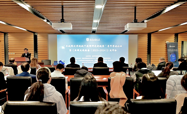 2025年11月15日,《英国发展报告(2023—2024)》发布会在北京外国语大学举行。本次发布会由北外主办,英语学院英国研究中心、区域与全球治理高等研究院承办,中国欧洲学会英国研究分会、西藏民族大学外语学院(南亚学院)及 Journal of Country and Area Studies 编辑部协办。来自北外、中国社会科学院、中国现代国际关系研究院、中国国际问题研究院、南京大学、北京师范大学、山东大学、上海外国语大学等多家高校与科研机构的专家学者和研究生参会。