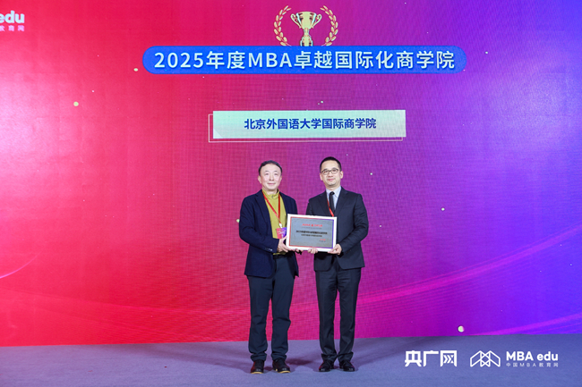 11月21日,由央广网主办、中国MBA教育网承办的“教育强国 管理何为——2025央广网MBA暨专业学位研究生教育年度盛典”在北京举行。本次盛典以“表彰标杆、激励前行”为核心,聚焦商科教育高质量发展主题,揭晓2025年度商科教育致敬榜单,旨在表彰坚守教育初心、锐意开拓创新、发挥行业引领作用的院校与个人,凝聚新时代商科教育发展合力。北京外国语大学国际商学院凭借突出的办学实力与行业影响力,斩获“2025年度MBA卓越国际化商学院”“2025年度商科新媒体先锋单位”两项荣誉。