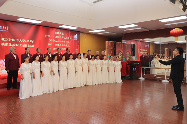 裴玉芳代表全体离退休教职工欢迎新成员加入,寄语新退休教职工让退休生活在“老有所乐”与“老有所为”中更具意义和价值。新退休教职工代表金利民深情回顾了自己的学习、工作时光,表示将继续传承红色基因,赓续延安薪火,发挥“传帮带”作用,为北外各项事业发展作出积极贡献。离退休人员党总支副书记、离退休工作处副处长苏磊介绍了学校离退休工作总体情况。