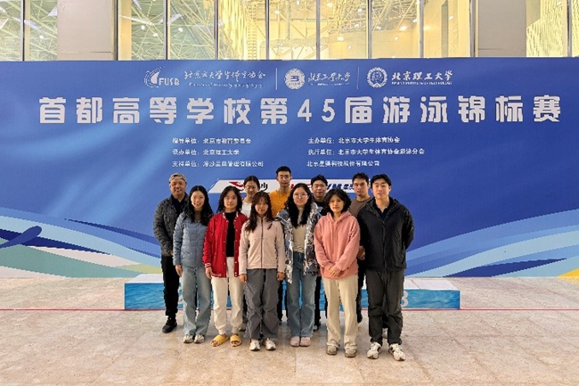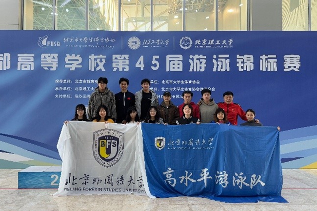 11月29日,首都高等学校第45届游泳锦标赛在北京理工大学举行。北京外国语大学高水平游泳队、普通学生游泳队在主教练林轶,体育教研部教师王新利、甄岢鑫的带领下,顽强拼搏、奋勇争先,斩获6金10银10铜,荣获甲组男女团体总分第二名、女子甲A组第二名、男子甲A组第三名、女子甲B组第三名和女子乙组100米自由泳项目第七名,并打破5项校级纪录。