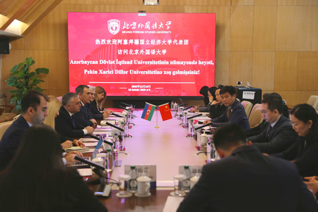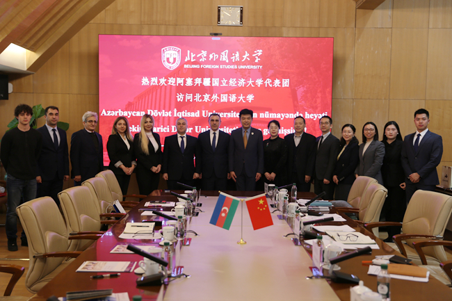 12月10日,阿塞拜疆国立大学经济大学副校长加莱·穆萨耶夫率代表团访问北京外国语大学。北外党委常委、副校长赵刚会见了穆萨耶夫一行。