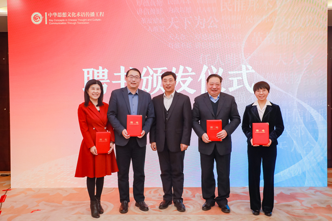 聘书颁发仪式上,刘培俊为“中华思想文化术语传播工程”新增专家委员会委员代表北京语言大学语言资源高精尖创新中心主任李宇明,北外党委常委、副校长丁浩,外研社社长王芳、外研社编审章思英颁发了聘书。李宇明代表专家委员表示,将不负信任与重托,积极投身中华思想文化术语的研究、阐释与传播工作,为促进文明互鉴、推动中华优秀传统文化创造性转化和创新性发展贡献力量。