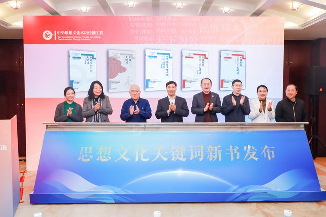 “思想文化关键词”系列的五种汉英对照新作,分别为《中华思想文化术语(生态文明卷)》《中国书法关键词》《中国戏曲文化关键词》《中国传统服饰文化关键词》和《中国传统民俗文化关键词》。该系列由各领域权威专家编著,从多学科角度深入阐释中华文化核心概念,是“术语工程”在第二个十年开局之年的重要学术成果。与会嘉宾与“思想文化关键词”系列图书作者共同为新书揭幕。