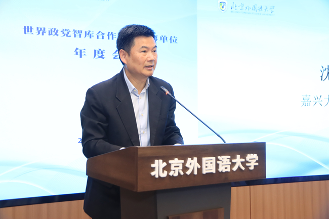 理事单位负责人发言交流环节举行,北外党委副书记贾德忠、复旦大学国际关系与公共事务学院教授郭定平、嘉兴大学浙江(嘉兴)中外政党研究中心主任周淑真、山东大学世界政党研究中心主任王韶兴、广西大学校长助理徐秦法等分别代表本单位进行了工作汇报。贾德忠在发言中表示,在中联部的领导下,北外未来将充分利用好自身多语种优势,把联盟秘书处平台维护好,把全国政党研究力量和智库资源统筹好,把中外政党智库的交流与合作开展好。