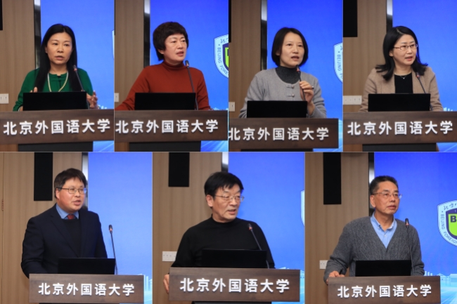 在项目开题汇报环节,重大项目“中国外语教育自主知识体系构建研究”首席专家,北外许国璋语言高等研究院院长文秋芳;重大项目“中国翻译学重大理论与实践问题研究”首席专家,浙江大学原副校长、发展委员会副主席何莲珍;重大项目“外国语言文学跨文化自主知识体系创新研究”首席专家,北京大学党委副书记、副校长宁琦;重大项目“中国外国文学自主知识体系创新研究”首席专家,上海外国语大学党委常委、副校长王欣;重大项目“外语学科国际传播平台建设与研究”子课题负责人,外研集团党委书记、董事长、外研社社长王芳依次发言。一般项目负责人杭州师范大学外国语学院院长周敏、黑龙江大学俄语语言文学与文化研究中心原主任孙淑芳、北外法语语言文化学院原院长车琳、上海外国语大学文学研究院院长张帆、复旦大学外文学院院长高永伟、北京航空航天大学外国语学院院长梁茂成、北外中国外语与教育研究中心名誉主任王文斌随后进行汇报。各项目负责人围绕研究目标、研究内容、创新之处和预期成果等进行了系统阐述。