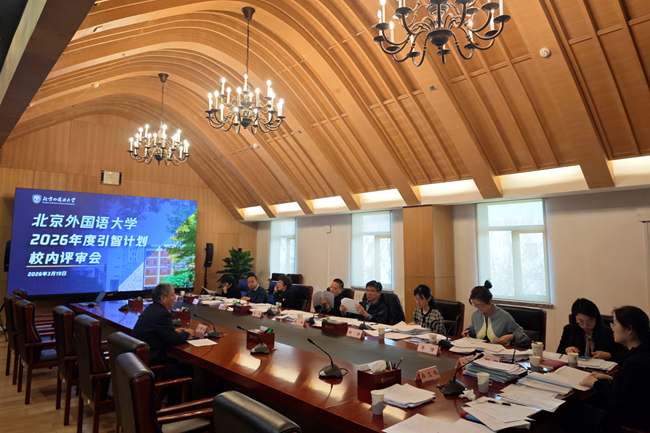 3月19日,北京外国语大学召开2026年度引智计划校内评审会。党委常委、副校长赵刚,校学术委员会主任袁军出席会议。