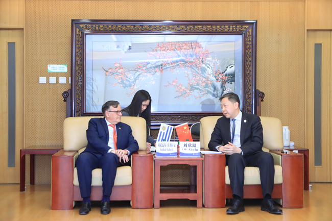 3月27日,乌拉圭驻华大使阿尼瓦尔·卡夫拉尔访问北京外国语大学,北外党委常委、副校长刘欣路会见了卡夫拉尔一行。