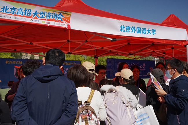 4月11日,由北京外国语大学、北京广播电视台联合主办的2026年北京高招大型咨询会暨北外校园开放日活动举行。来自北京、天津、上海、山东、四川、黑龙江、辽宁、吉林等多地的八千余名考生和家长齐聚北外校园,面对面咨询招生政策、沉浸式感受校园文化。