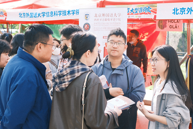 本次高招咨询会聚焦考生升学核心需求,旨在搭建学校与考生之间的高效沟通平台。主活动区域内,70余所京内外知名高校集中设展,各校招生负责人现场权威解读 2026 年招生政策,详细解答招生计划、录取规则、专业特色、报考注意事项等考生关切的重要问题。北外各本科招生学院及教务处、校团委、就业创业中心在校园林荫大道设立专属咨询点位,依托学科优势,围绕培养方案、课程特色、国际交流、团学活动、升学就业前景等内容,为考生提供一对一、个性化升学指导,精准助力考生明晰报考方向。活动现场秩序井然、氛围热烈,专业细致的咨询服务得到广大考生及家长的高度认可。