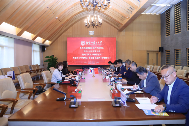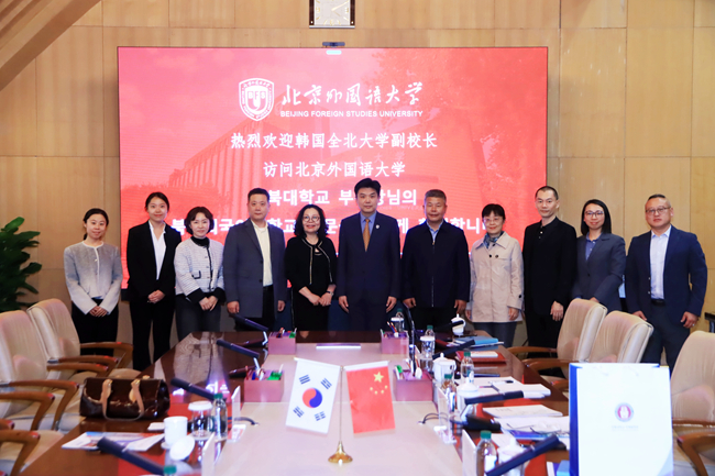 韩国全北大学相关工作人员,北外国际交流与合作处、继续教育学院、非洲学院、亚洲学院有关负责同志参加会见。