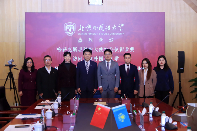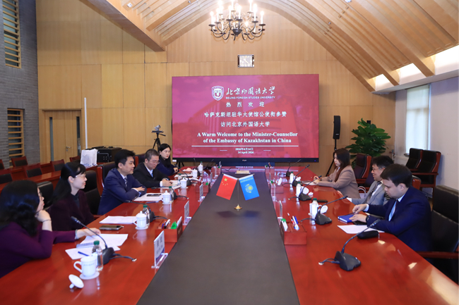 哈萨克斯坦驻华大使馆参赞达乌列特·奥马罗夫及相关工作人员,北外国际交流与合作处处长、俄语学院有关负责同志参加会见。
