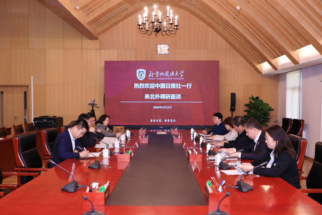 21世纪报社副总编辑张海港、相关部门负责人,北外学生工作处、英语学院、国际新闻与传播学院等单位负责人参加座谈。