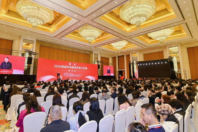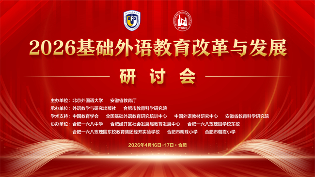 4月16日,2026基础外语教育改革与发展研讨会在安徽举行。本次会议由北京外国语大学、安徽省教育厅主办,中国教育学会、全国基础外语教育研究培训中心、中国外语教材研究中心、安徽省教育科学研究院提供学术支持,外语教学与研究出版社、合肥市教育科学研究院承办,合肥一六八中学、合肥经开区社会发展局教育发展中心、合肥一六八玫瑰园学校东校、合肥一六八玫瑰园东校教育集团经开实验学校、合肥市明珠小学、合肥市朝霞小学协办。