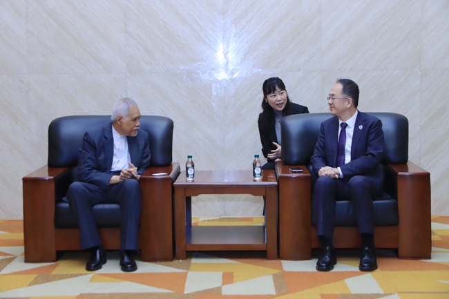贾文键介绍了北外在学科发展、人才培养、科学研究、国际合作及推动中马人文交流等方面的优势与亮点,并强调,北外始终高度重视中马教育合作,依托中国马来研究中心、孔子学院等平台持续推动两国多领域互动与青年对话。贾文键提出了未来合作的三个建议方向:一是开展创新教育合作,培育未来栋梁;二是鼓励高端科研合作,聚力协同攻关;三是搭建青年交流平台,促进对话互鉴。