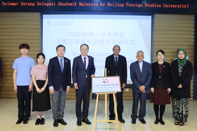 随后,贾文键与马来西亚国际伊斯兰大学理事会成员、马来西亚前驻华大使、马中友好协会会长阿卜杜勒·马吉德・艾哈迈德汗共同为“2026中国—马来西亚文明互鉴青年交流营”揭幕。该项目将于4月26日至30日在马来西亚吉隆坡举行,由北外联合马来西亚国家语文局、马来西亚高等教育部、中国驻马来西亚使馆、马来西亚驻华使馆教育处等相关机构举办,旨在搭建青年交流平台,深化两国在人文与教育领域的合作。北外及国内其他开设马来语教学的12所院校师生将参与其中。