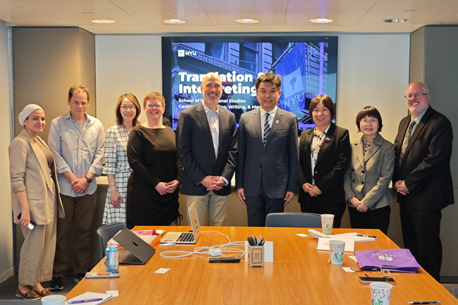 4月17日中午,代表团访问纽约大学,全球拓展与流动事务副校长乔希·泰勒等会见代表团一行。双方代表就进一步深化合作,积极促进师生交流互访,推动两校在语言教育、教育技术创新、学术研究等领域务实合作达成了高度一致。