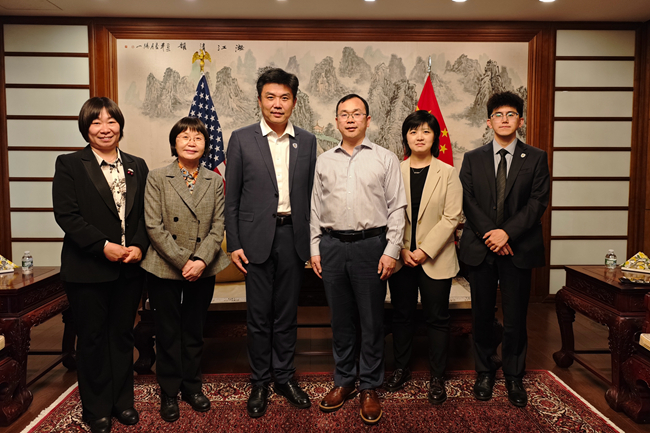 4月17日下午,代表团拜访中国驻纽约总领事馆,领事耿俊伟、高仁君会见代表团一行。耿俊伟高度肯定了北外在中美教育人文交流中发挥的重要作用,对北外与美国高校所取得的务实合作成果表示赞赏。赵刚对驻纽约领事馆长期以来对北外的大力支持与协助表示感谢,并介绍了北外在中外合作办学、短期交流项目、国际中文教育等方面的最新发展情况及同美国高校的交流合作进展。
