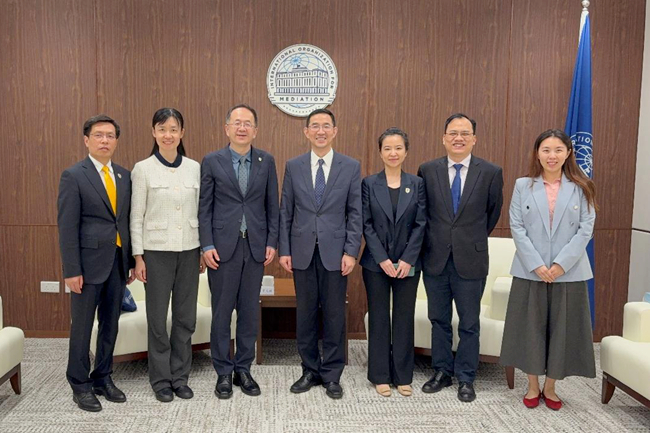 当天下午,代表团还拜会了国际调解院。贾文键与国际调解院副秘书长孙劲进行会谈,双方围绕多语种人才培养、国际调解能力建设、学生实习实践等议题进行深入交流。贾文键表示,北外作为“共和国外交官摇篮”,在外语教学、区域国别研究、国际组织人才培养方面具有独特优势,希望未来与国际调解院在联合举办国际研讨会、开发跨文化调解培训课程、选派学生参与志愿服务等方面开展务实合作,共同培养精通国际法、熟悉多元文化、具备调解技能的高层次涉外法治人才。孙劲介绍了国际调解院的最新进展和未来工作重点,表示愿与北外加强沟通,探讨在人才培训、学术研究、实习实践等领域的合作可能,共同推动国际调解事业的发展。
