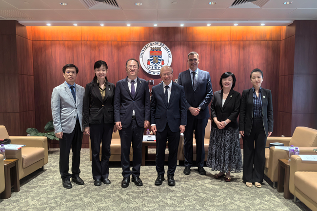 4月24日上午,代表团访问澳门大学,与代校长许敬文、葡语系主任 João Veloso及图书馆、全球事务部代表进行座谈。贾文键回顾两校合作历程,重点介绍北外西葡语学院、法学院学科建设与人才培养特色,希望在“葡语+法学”人才联合培养、学生交换、教师互访、学术研究等方面深化合作。许敬文介绍澳门大学国际化办学与葡语、法学学科优势,双方就拓展葡语和法学专业合作、联合开展学术研究等事宜深入磋商,进一步夯实两校合作基础。