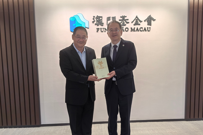 随后,代表团拜会澳门基金会行政委员会主席、北外81级校友吴志良。贾文键介绍北外与澳门高校在葡语和法学专业方面的合作进展,并重点分享2025年举办“亚太青少年模拟联合国大会暨全球胜任力青年论坛”的经验,希望今年将活动拓展至澳门,推动更多澳门青年参与国际议题讨论。吴志良对北外相关工作给予肯定,认为要充分发挥活动的平台作用,为澳门人才培养以及促进中国与葡语国家乃至全球南方国家的交流合作作出更大贡献。