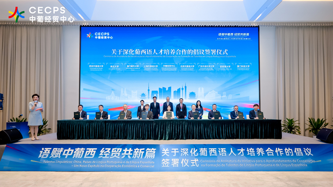 4月26日,代表团赴珠海走访中国-葡语(西语)国家经济贸易服务中心,出席《关于深化葡西语人才培养合作的倡议》联合签约仪式与圆桌论坛。会谈与签约期间,双方围绕人才联合培养、实习实践基地建设、教师社会服务、区域国别研究、中葡经贸文化交流等议题深入交流,达成多项务实成果,推动实现校企协同、资源共享、优势互补、合作共赢。