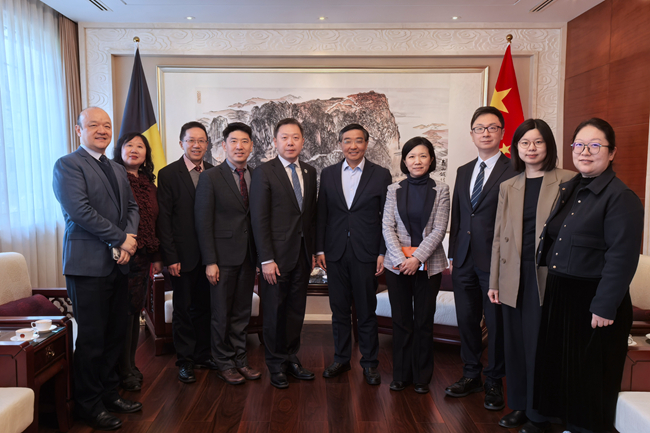 4月27日上午,代表团前往中国驻比利时大使馆,拜会大使费胜潮。刘欣路向费胜潮介绍了北外近年发展成就,尤其是学科建设、人才培养、国际交流等领域成果。费胜潮对北外合作建设布鲁塞尔孔子学院、列日孔子学院工作表示肯定,并向代表团通报了中比、中欧交流交往的最新情况。