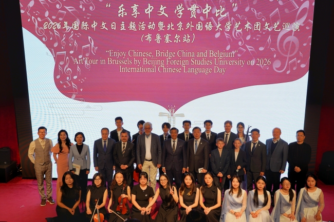 4月26日下午,代表团访问布鲁塞尔孔子学院,同中比双方院长就孔子学院发展等议题深入交流。当晚,代表团出席纪念中比建交55周年暨2026年“国际中文日”庆典。刘欣路在致辞中指出,北外作为中国外语教育重镇,将持续践行“把中国介绍给世界”的使命,培养更多精通语言、深谙文化的使者,为深化两国教育合作与民心相通贡献力量。