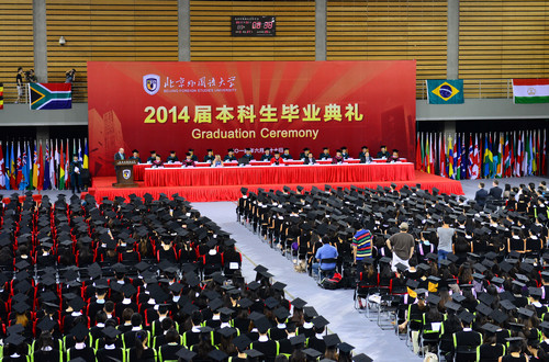 6月27日上午,2014届本科生毕业典礼举行在体育馆举行。校长彭龙,党委副书记姜绪范,副校长闫国华、贾文键、孙有中出席典礼。来自全校各院系的1085名本科生,139名留学生参加了毕业典礼。